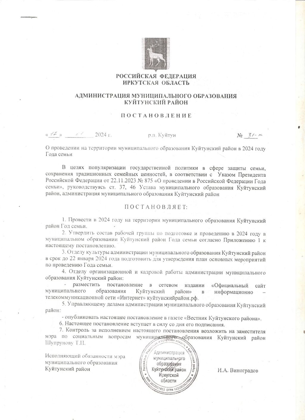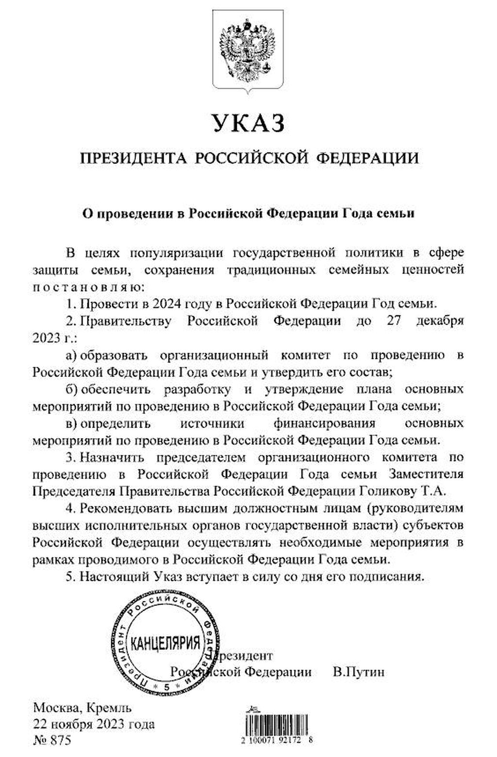 - «Высшая ценность - семья!» - открытие Года семьи.