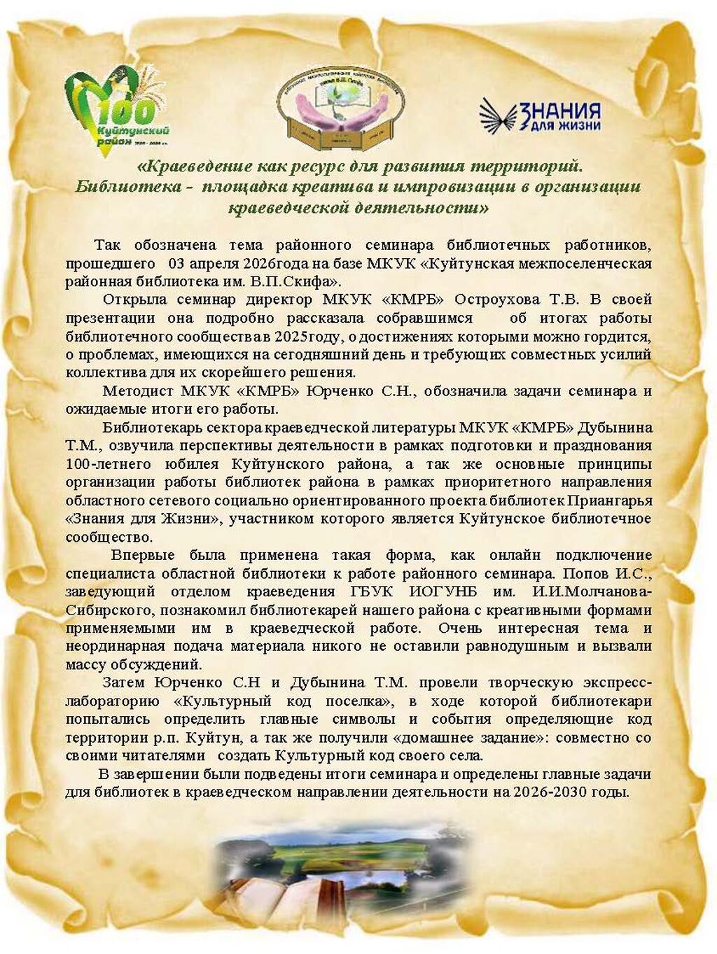 Муниципальное казенное учреждение культуры «Куйтунская межпоселенческая районная библиотекаим. В. П. Скифа» адрес: 665302, Иркутская область, Куйтунский район, рабочий поселок Куйтун, ул. Карла Маркса, д. 19