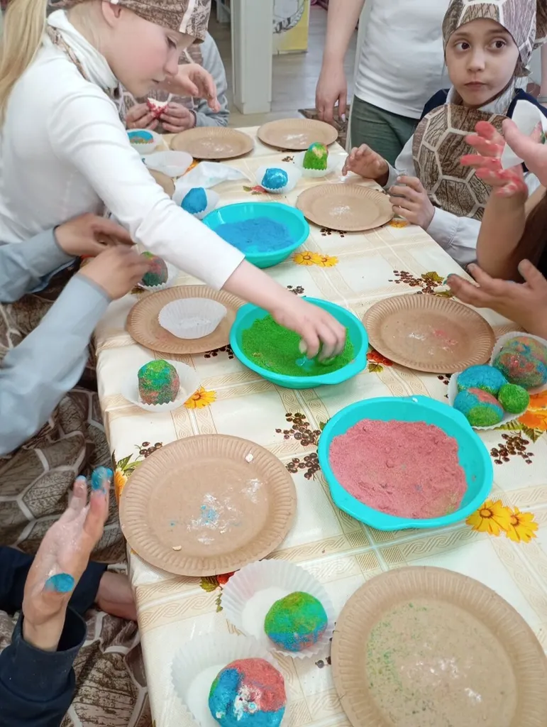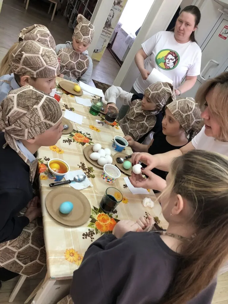 Всё ближе праздник — Христово Воскресенье, Пасха. В преддверии праздника в Карымской сельской библиотеке прошло мероприятие в рамках проекта "Вызов". В начале встречи председатель Совета женщин, библиотекарь Татьяна Аполлоновна Столпенко, провела беседу о приближающемся празднике. Анастасия Александровна Бархатова показала, как можно покрасить яйца, получив разные красивые оттенки. Олеся Сергеевна Цыбулина научила ребят, как получить пасхальные яйца в крапинку. Дети с увлечением и огромным интересом окрашивали яйца, радуясь, какими красивыми они получаются. Юлия Тимофеевна Черненко затем предложила детям приготовить вкусные пирожные в виде яйца. А какими вкусными они получились! Дети не могли удержаться, чтобы не попробовать свои "пирожные". Ребята получили приятные впечатления, массу положительных эмоций, научились красить яйца на праздник Пасхи. Огромное спасибо нашим мастерицам из Совета женщин за помощь в проведении мастер-класса.